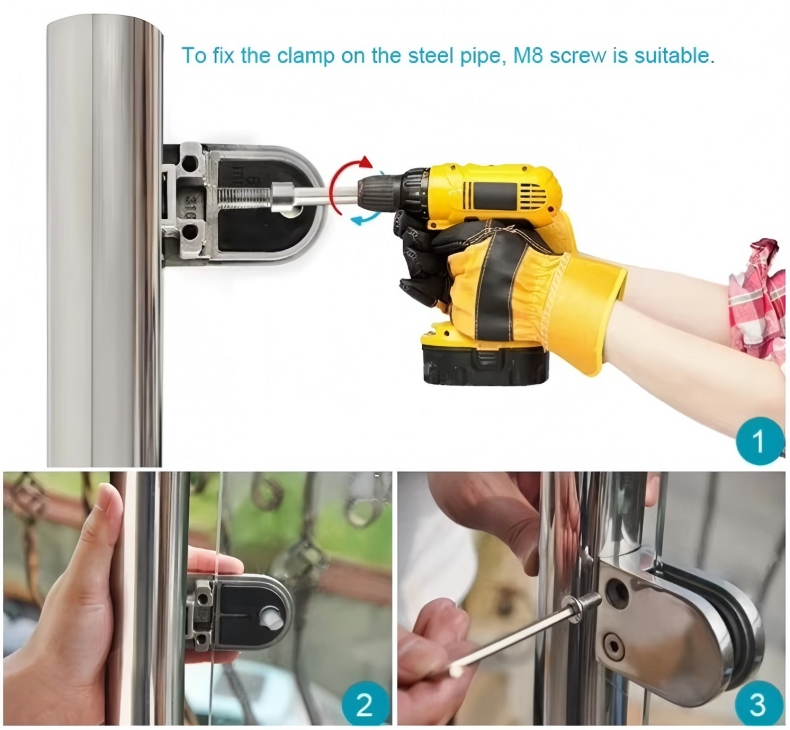60mm D Shape Modern Stainless Steel SUS 304 Glass Clamp 8-12mm Thickness Stair Railing Holder