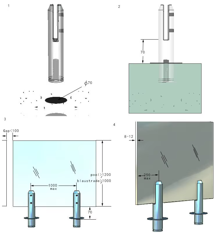 Outdoor Fence Stainless Steel 2205 Railing Posts Balustrades Handrail Bracket Round Core Drill Glass Spigot in Pool Fencing